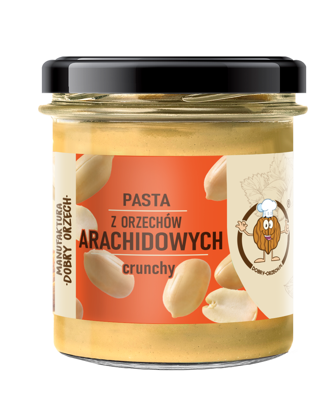 Crunchy Erdnussbutter aus der Manufaktura Dobry Orzech wird aus hochwertigen Erdnüssen hergestellt, die nach traditionellen Verfahren verarbeitet werden.