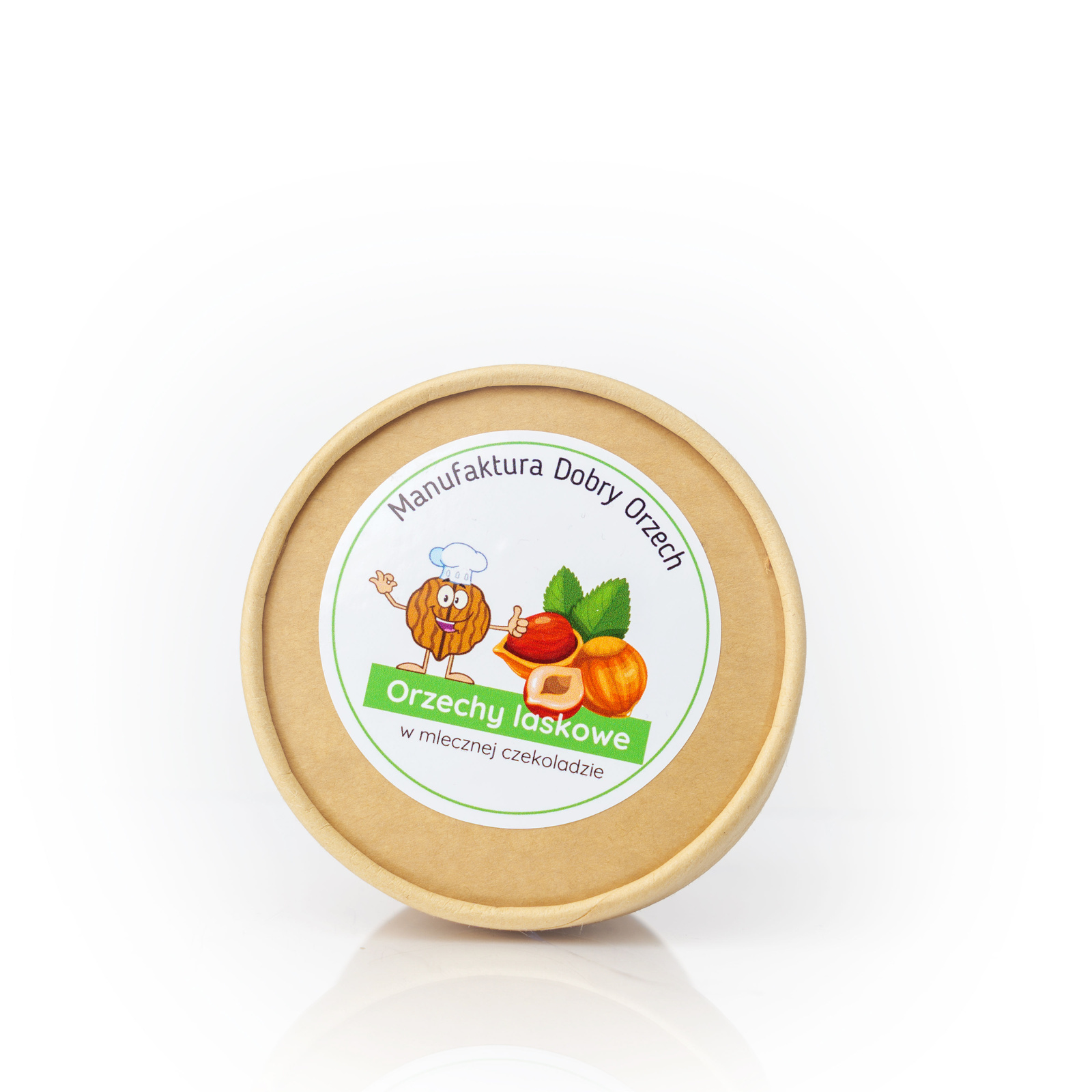 mleczna czekolada [cukier, tłuszcz kakaowy, mleko w proszku, miazga kakaowa, serwatka w proszku (z mleka), emulgator: lecytyna sojowa, naturalny aromat wanilii], orzechy laskowe prażone, tłuszcz kakaowy,