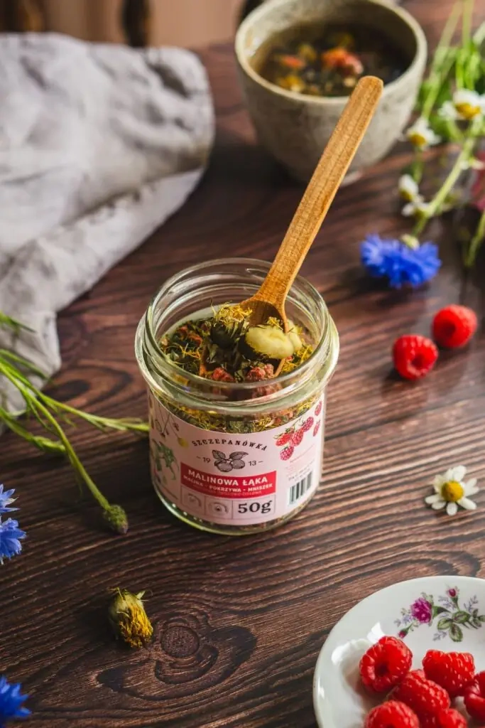 Malinowa Łąka to harmonijne połączenie intensywnej maliny z delikatnie ziołowymi nutami pokrzywy i kwiatów mniszka lekarskiego. To mieszanka stworzona z myślą o tych, którzy szukają naturalnego wsparcia dla organizmu, cenią sobie smak prawdziwych owoców i roślin, a jednocześnie pragną chwili wyciszenia z kubkiem aromatycznego naparu.
