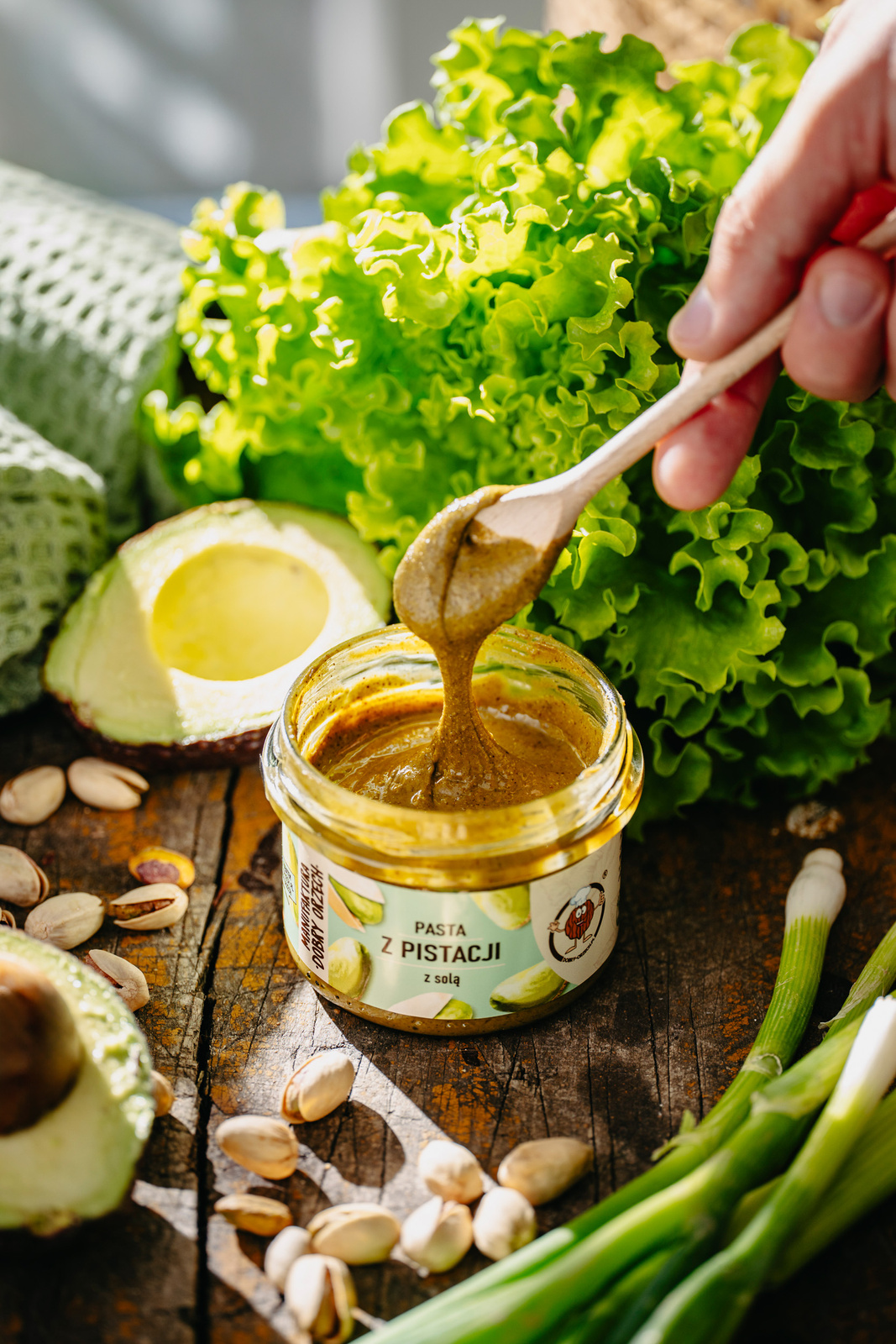 Smak i konsystencja: Konsystencja gęsta, kremowa. Za to właśnie kochamy pistację, że charakteryzuje się intensywnym, wyrazistym, orzechowym smakiem. Szczypta soli dodatkowo podkreśla smak pistacji.