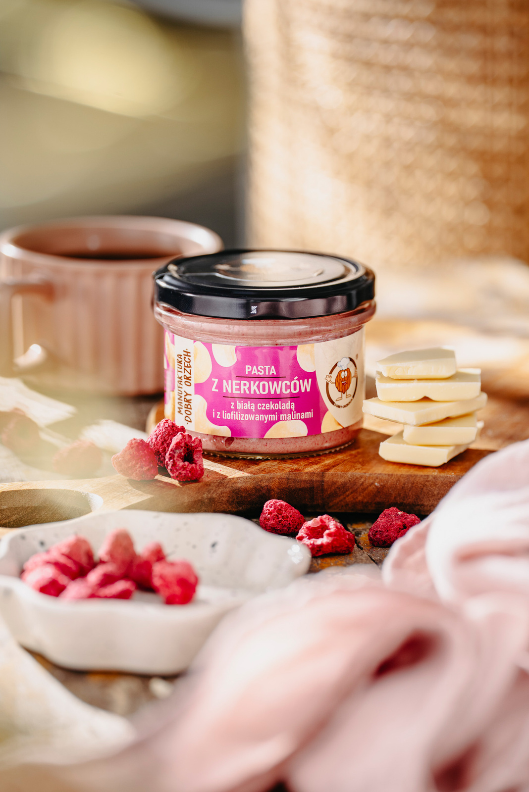 Pasta z orzechów nerkowca z białą czekoladą i malinami idealnie smakuje podane na kanapce, naleśniku czy gofrze w połączeniu z dżemem. Dodane do owsianki, ciast lub wyjadane łyżeczką bezpośrednio ze słoika także będzie rozpieszczać podniebienia ;) W naszym produkcie nie znajdziesz żadnych konserwantów, stabilizatorów, sztucznych aromatów i innych zbędnych dodatków chemicznych. Utwardzonym tłuszczom także mówimy stanowcze NIE! Nasze produkty tworzone są tylko i wyłącznie z naturalnych składników. To co nas wyróżnia to niesamowity smak i nieskazitelna jakość.